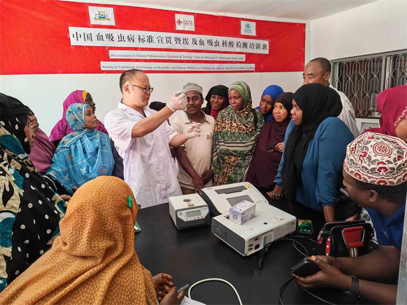 人民网内罗毕10月14日电 (记者黄炜鑫)达累斯萨拉姆消息:今年10月14日是第56个世界标准日。为进一步提升当地公共卫生人员专业技术能力、推动当地血吸虫病防控工作规范化、科学化开展,中国援助桑给巴尔血吸虫病防治技术项目专家组(以下简称“专家组”)当日在坦桑尼亚桑给巴尔地区举办中国血吸虫病标准宣贯暨埃及血吸虫核酸检测培训班,当地60余名专业技术人员参加。